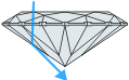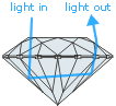 Ideally, the cut of the diamond is done in a way to best reflect the light that shines into it. This is what produces the sparkle and fire we see in a beautifully cut diamond. If the diamond is cut too heavy, or too shallow, most of the light entering into the crown is released through the bottom of the pavillion resulting in an overall dull appearance. An ideal cut diamond on the other hand, returns most of the light that enters it back through the crown giving it a very satisfying sparkle effect.
